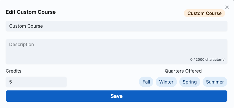 Transfer student? Going abroad? No problem. Add your own custom courses into your degree plan.