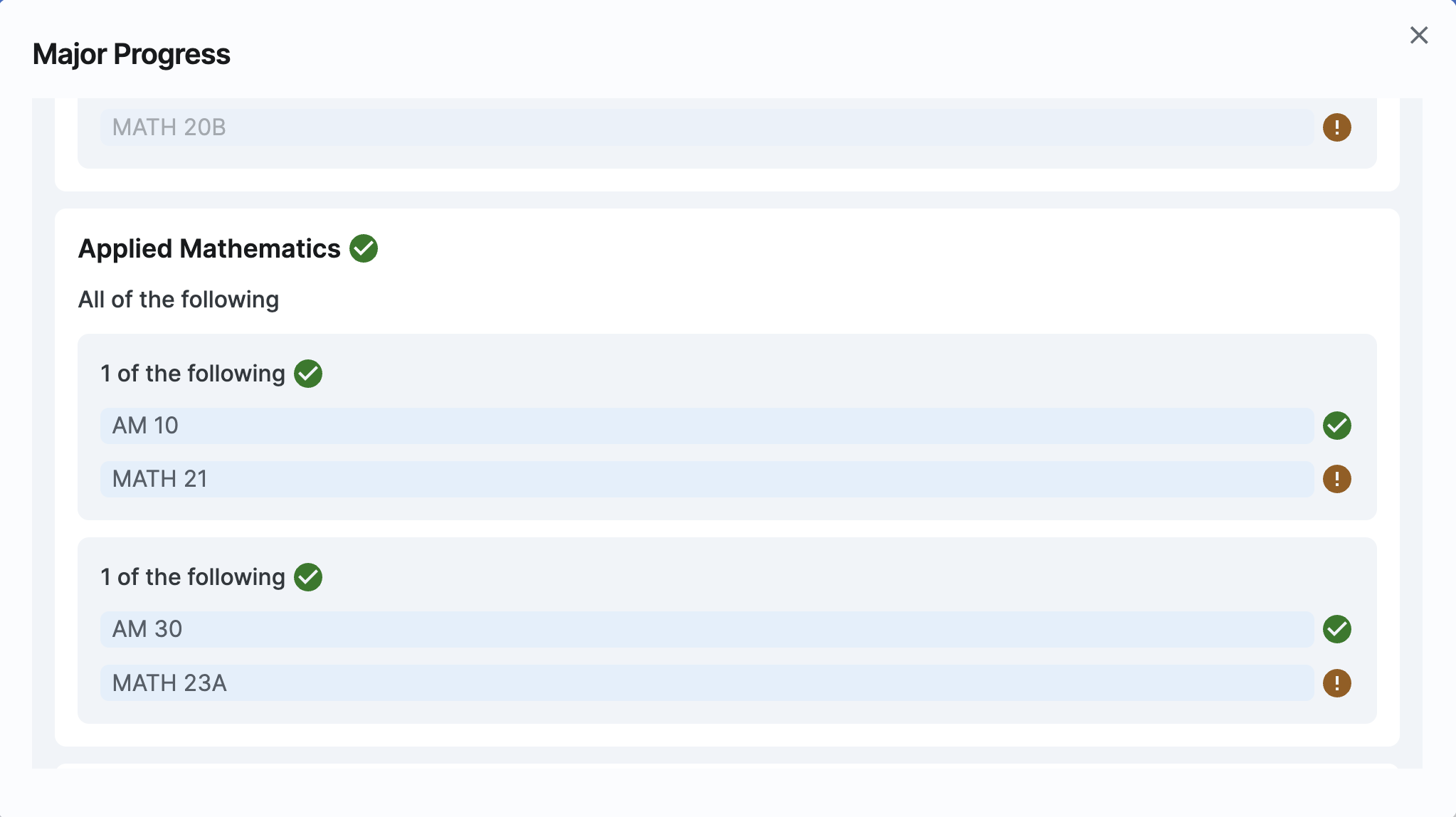 With our major progress system, we check that you have all your GEs, necessary credits and meet your major/minor requirements.